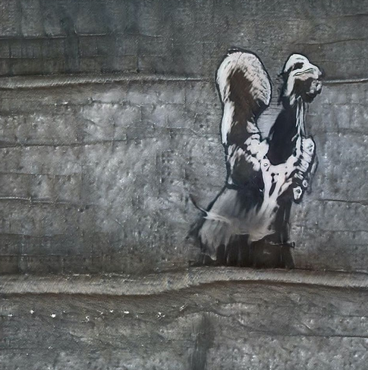 ... a twisted visual genius whose work reflects our unsettled times… [who] learns about the structures and textures in the works [of Banksy], looking for common patterns and themes and then tries to recreate that effect itself